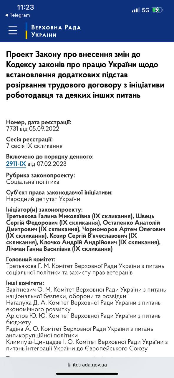 Вчера парламент поддержал в первом чтении примечательный законопроект - о внесении изменений в КЗОТ относительно новых оснований для увольнения работников по инициативе работодателя.