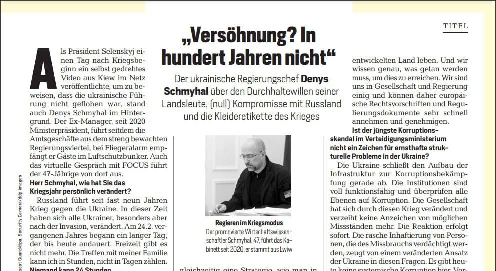 Такое мнение озвучил премьер-министр Денис Шмыгаль в интервью немецкому Focus.
