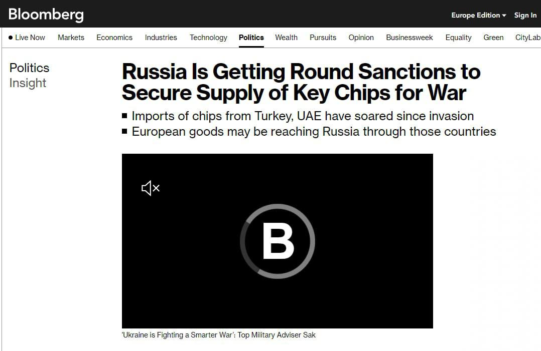 Россия обходит санкции на покупку электроники для производства оружия с помощью третьих стран - Bloomberg