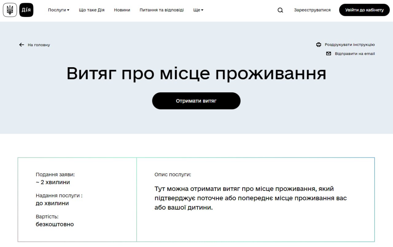 Выписка предоставляется через несколько минут после запроса. При этом такая выписка предоставляется лишь если данные о ребенке есть в Реестре территориальных громад.