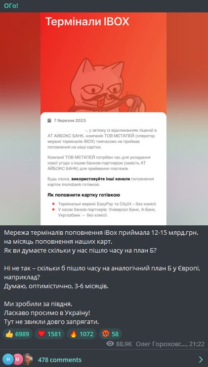 (Ранее это можно было делать через терминалы iBox, но вчера НБУ отозвал у сети терминалов лицензию).