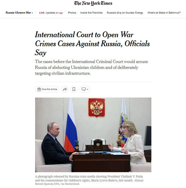 «Фокус на Бахмуте вызывает скептицизм с обеих сторон... Контроль над городом вряд ли повлияет на исход войны. Выгода для Украины от массовых убийств наемников «Вагнера» и российских солдат может не перевесить цену ее собственных серьезных потерь, учитывая, что Киеву нужны ресурсы для ожидаемого весеннего наступления», – также говорится в статье.