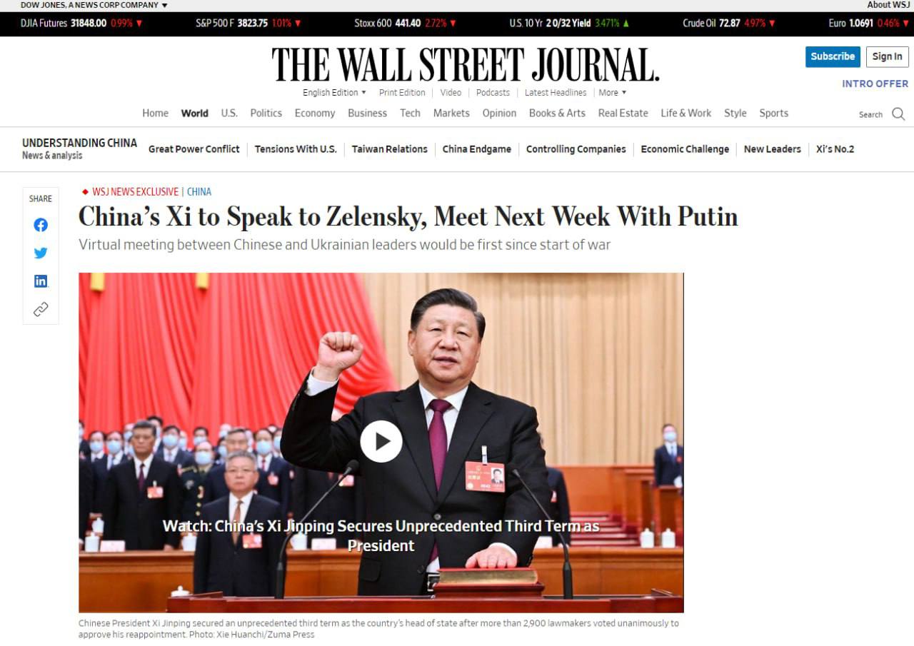 13.20 Си Цзиньпин планирует провести онлайн-встречу с Зеленским, пишет The Wall Street Journal.