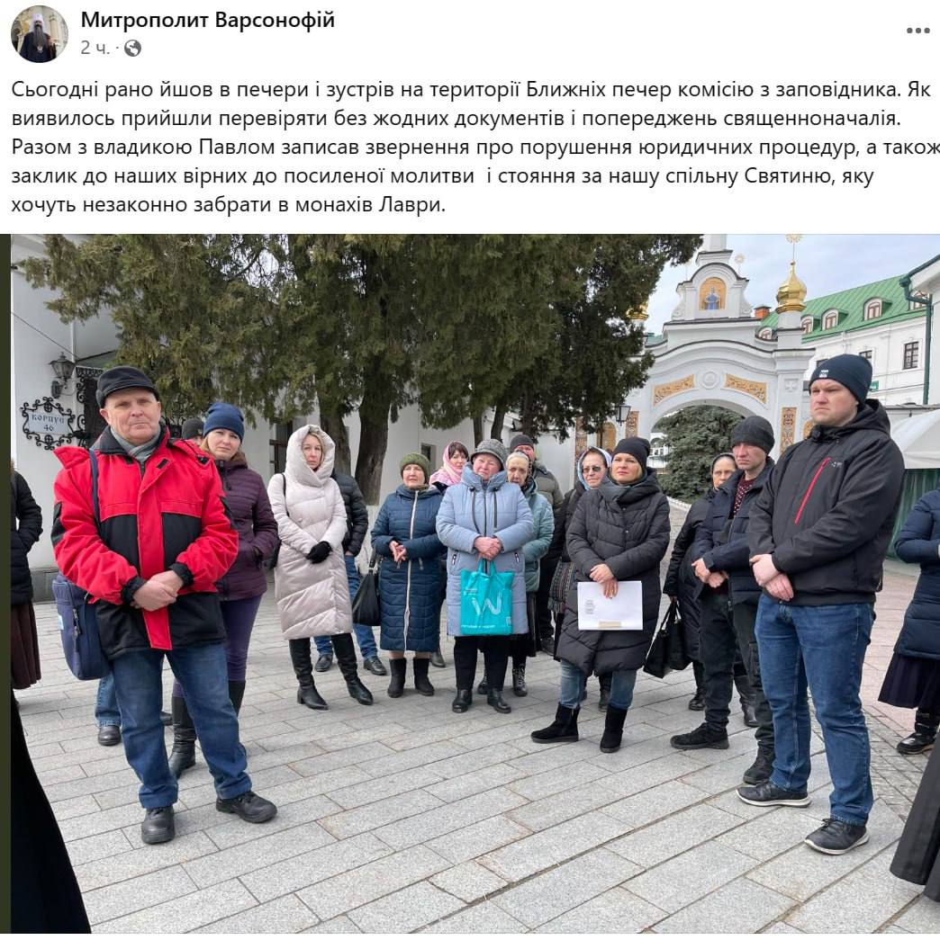 Ее прислали из национального заповедника "Киево-Печерская Лавра" сообщил митрополит Винницкой епархии УПЦ Варсонофий, который говорит, что о проверке священноначалие не предупреждали.