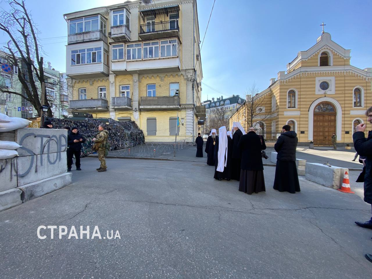 Спустя некоторое время к представителям Синода УПЦ, которые пришли на Банковую к Зеленскому, вышел сотрудник аппарата Офиса президента и заявил, что готов принять их обращение.