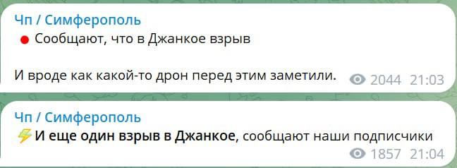 Крымские паблики сообщают о взрывах в Джанкое. Также сообщается, что перед взрывами был замечен дрон.