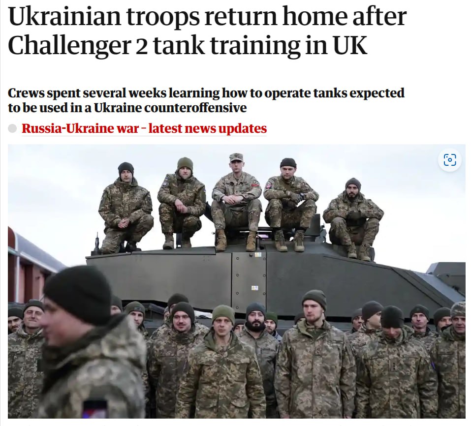 08.55 Украинские экипажи возвращаются домой после нескольких недель обучения на британских танках Challenger 2. Об этом пишет газета Guardian.