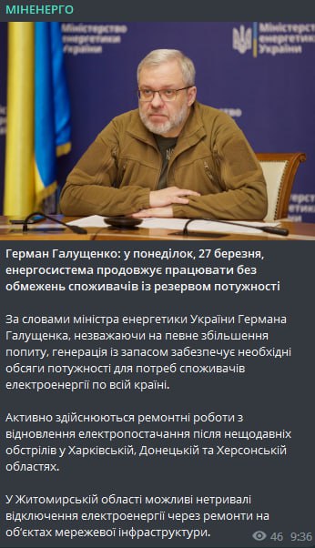В понедельник, 27 марта, в Украине идет уже 397-й день войны с РФ.