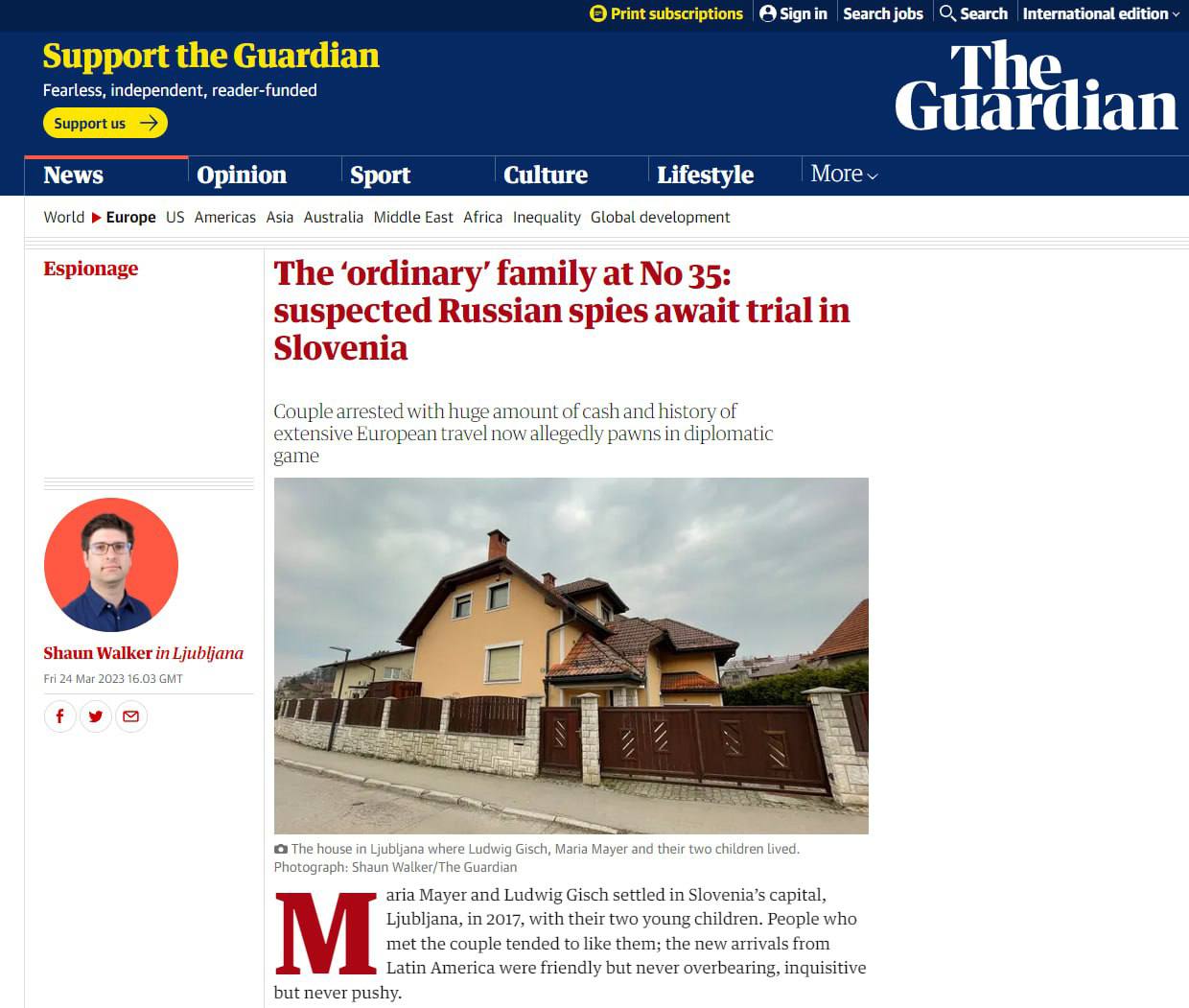 15:27 В Словении задержали семью, которую спецслужбы считают "спящими" агентами-нелегалами, работавшими на РФ. Мария Майер и Людвиг Гиш прибыли с двумя детьми в страну из Аргентины ещё в 2017 году, пишет The Guardian.
