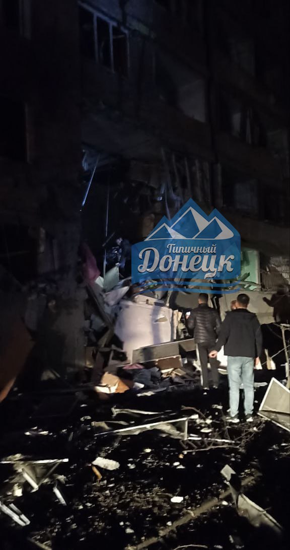 22:41 Фото последствий прилета в Киевском районе Донецка.