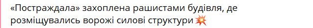 По его словам, "пострадало" захваченное россиянами здание, где размещались вражеские "силовые структуры".