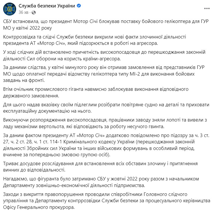 СБУ обвинила экс-президента "Мотор Сичи" Богуслаева в блокировке передачи вертолета для военной разведки