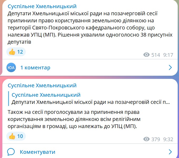 На фоне произошедшего мэр Хмельницкого пообещал лишить УПЦ всех земельных участков в городе.
