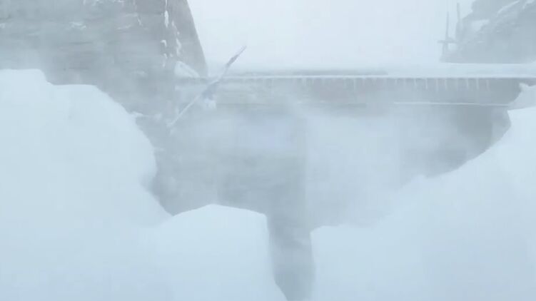 С утра видимость на горе ограничена до 30 м. Ветер дует западный 15-17 м/с. Горы накрыла метель, идет сильный снег.