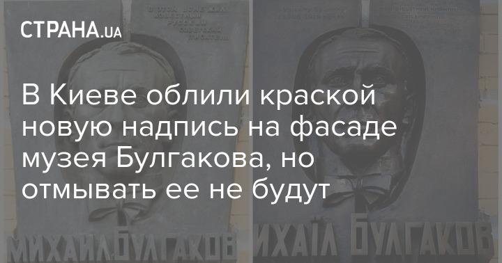Директор дома-музея писателя Михаила Булгакова Людмила Губианури в комментарии "Стране" сообщила, что музей не будет отмывать новую мемориальную доску писателю.