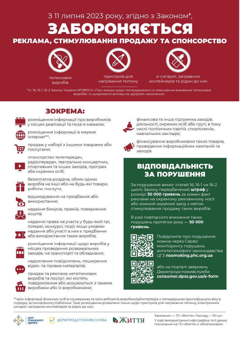 С завтрашнего дня в Украине вступает в силу новая часть запретов на продажу обычных и электронных сигарет, предусмотренных принятым еще в декабре 2021 года законом №1978-IX.