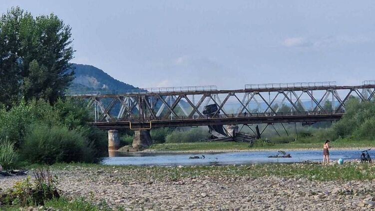 В Закарпатской области обрушилась одна из секций моста через реку Тересва.