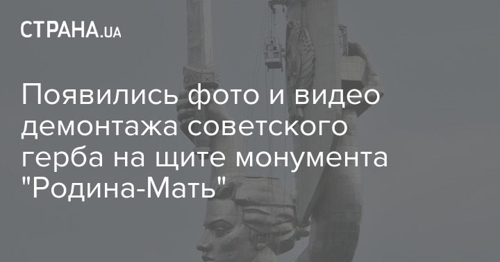 В воскресенье, 30 июля, в Киеве начался демонтаж советского герба на монументе "Родина-Мать".