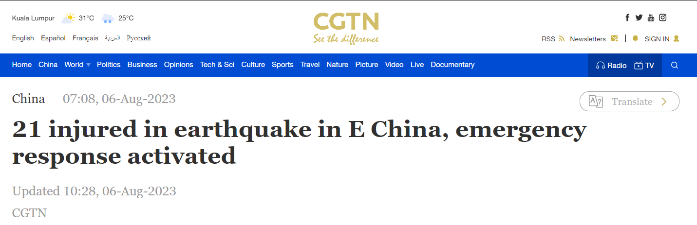 На востоке Китая произошло сильное землетрясение. Обрушились 126 зданий