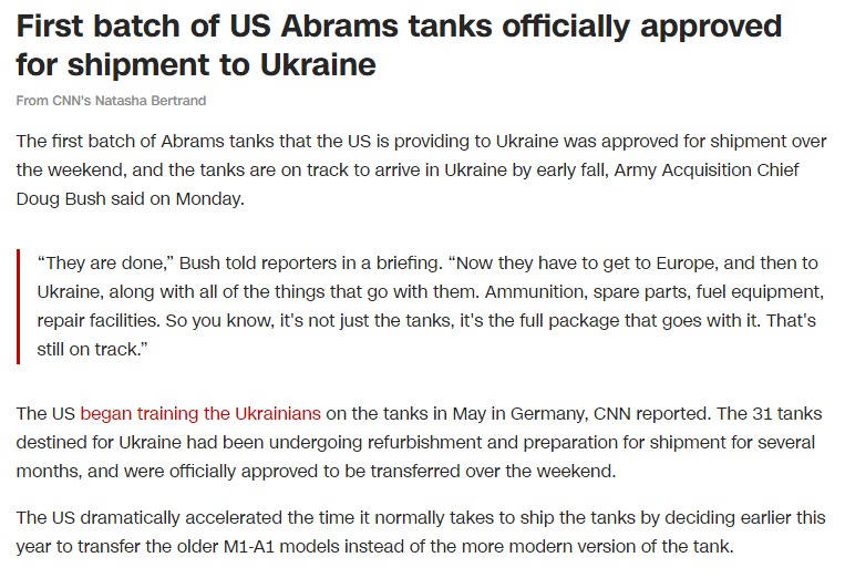 США резко сократили время, которое обычно требуется для отгрузки танков, приняв ранее в этом году решение о передаче более старых моделей M1-A1 вместо более современной версии танка.