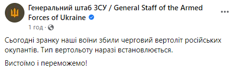 Утром 9 августа украинские военные сбили очередной вертолет российских оккупантов.