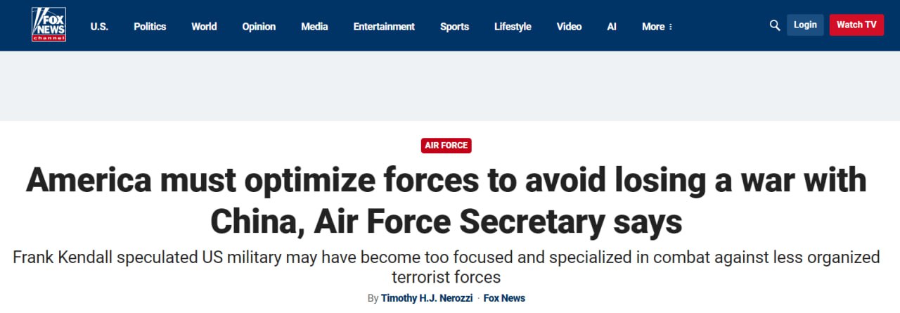 "Наша работа состоит в том, чтобы предотвратить эту войну и быть готовыми победить, если она произойдет. Мы все говорим о том, что воздушно-космические силы должны измениться, иначе мы не сможем предотвратить войну и даже можем проиграть ее", - предупредил чиновник.