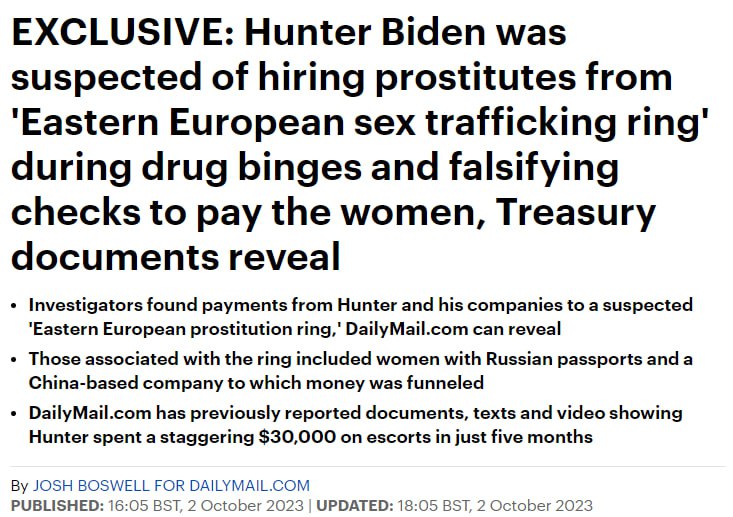 За наркопати платил с делового счёта. Сына Байдена заподозрили в найме проституток из Восточной Европы
