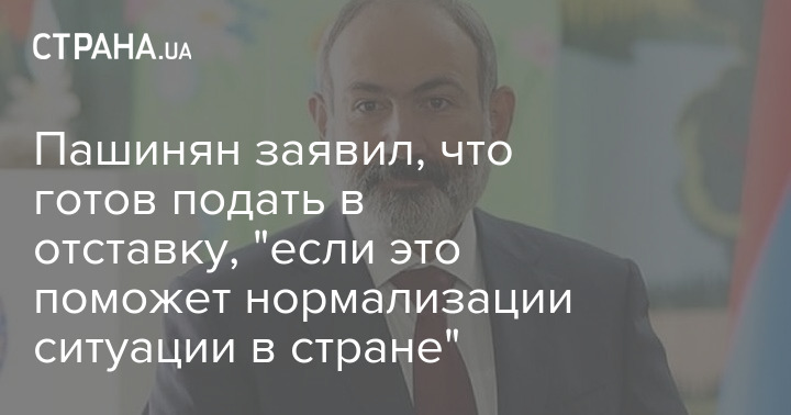 Премьер-министр Армении Никол Пашинян заявил, что готов подать в отставку, "если это поможет нормализации ситуации в стране".