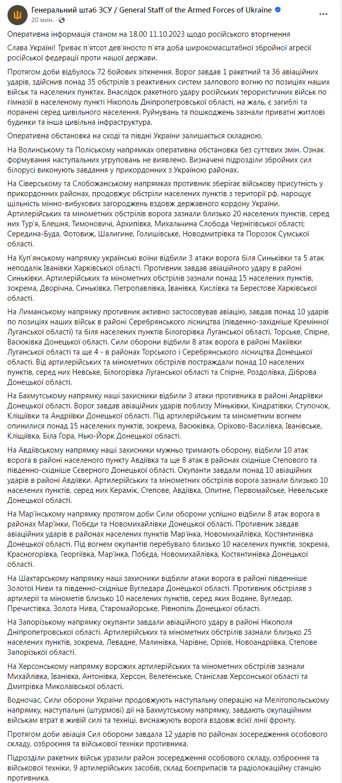 08.50 Главное из сводки Генштаба ВСУ на утро.