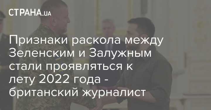 Признаки раскола между Зеленским и Залужным стали проявляться к лету 2022 года - британский журналист