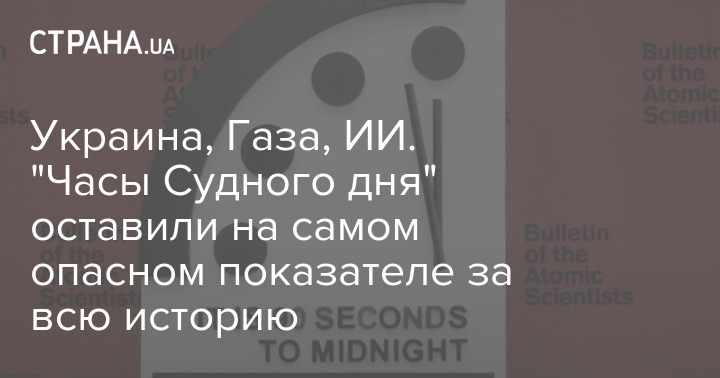 Украина, Газа, ИИ. "Часы Судного дня" оставили на самом опасном показателе за всю историю