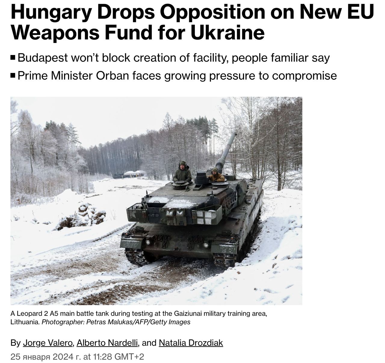 13.25 Венгрия откажется от своих возражений против создания фонда военной помощи Украине.