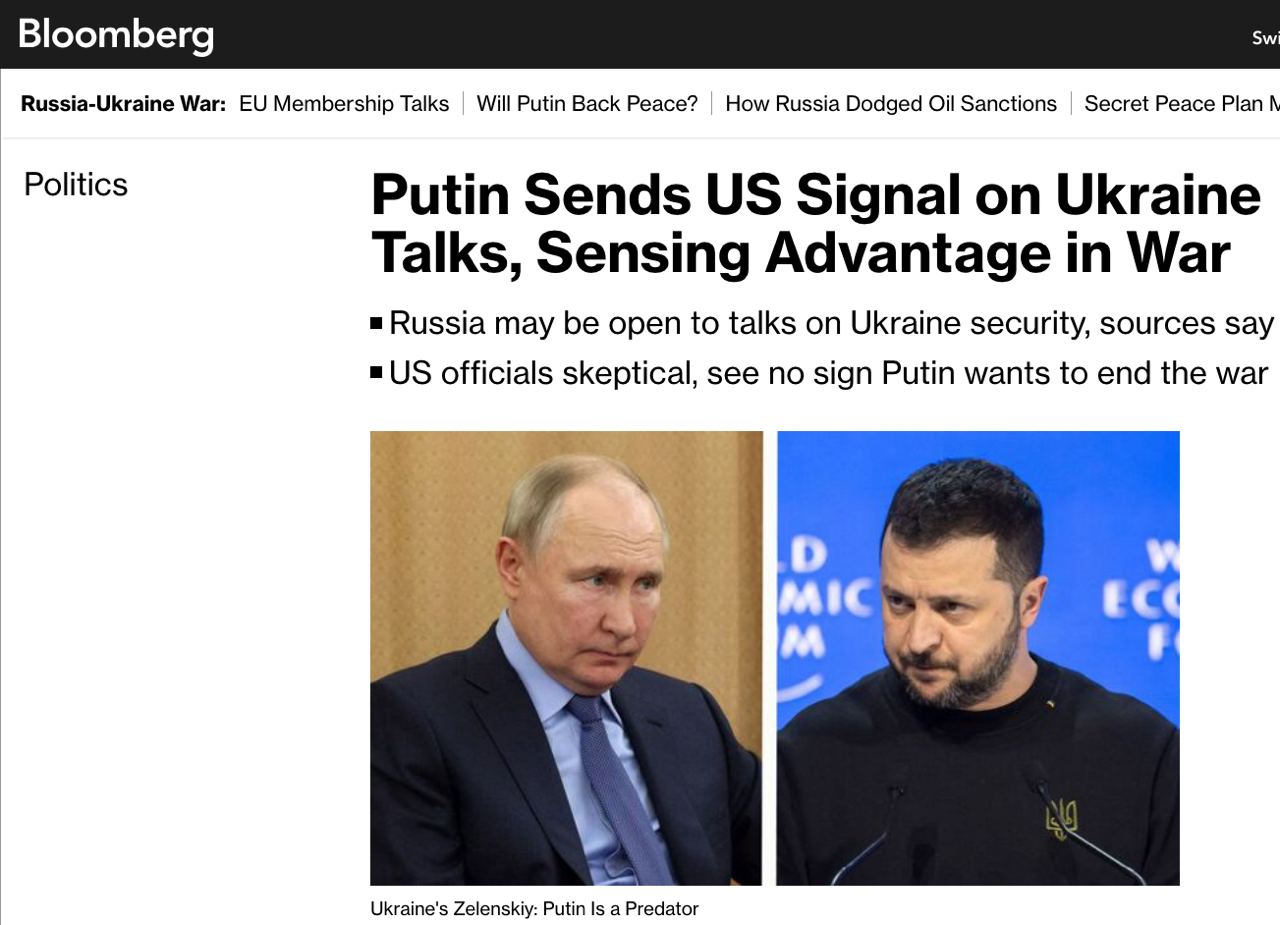 Отметим, что это не первая уже статья в американских СМИ о том, что Путин посылает сигналы о готовности завершить войну в Украине на условиях сохранения российского контроля над уже захваченными территориями. Об этом писала "Нью-Йорк Таймс".