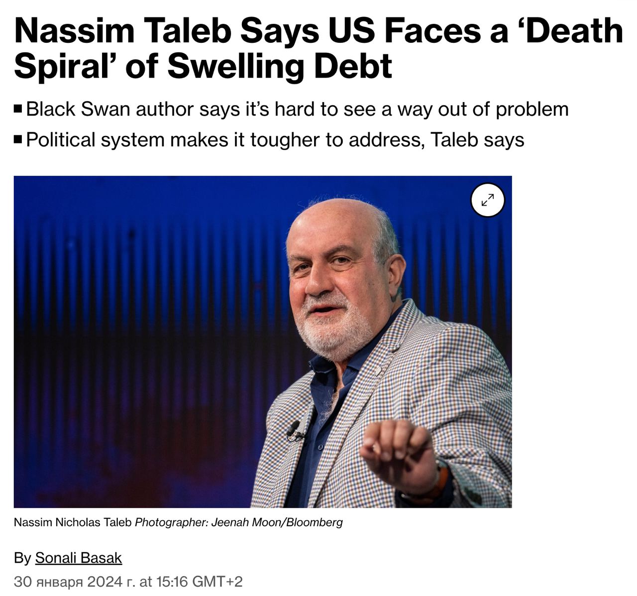 Писатель обрисовал тяжелую ситуацию с госдолгом США. Фото: facebook.com/nntaleb