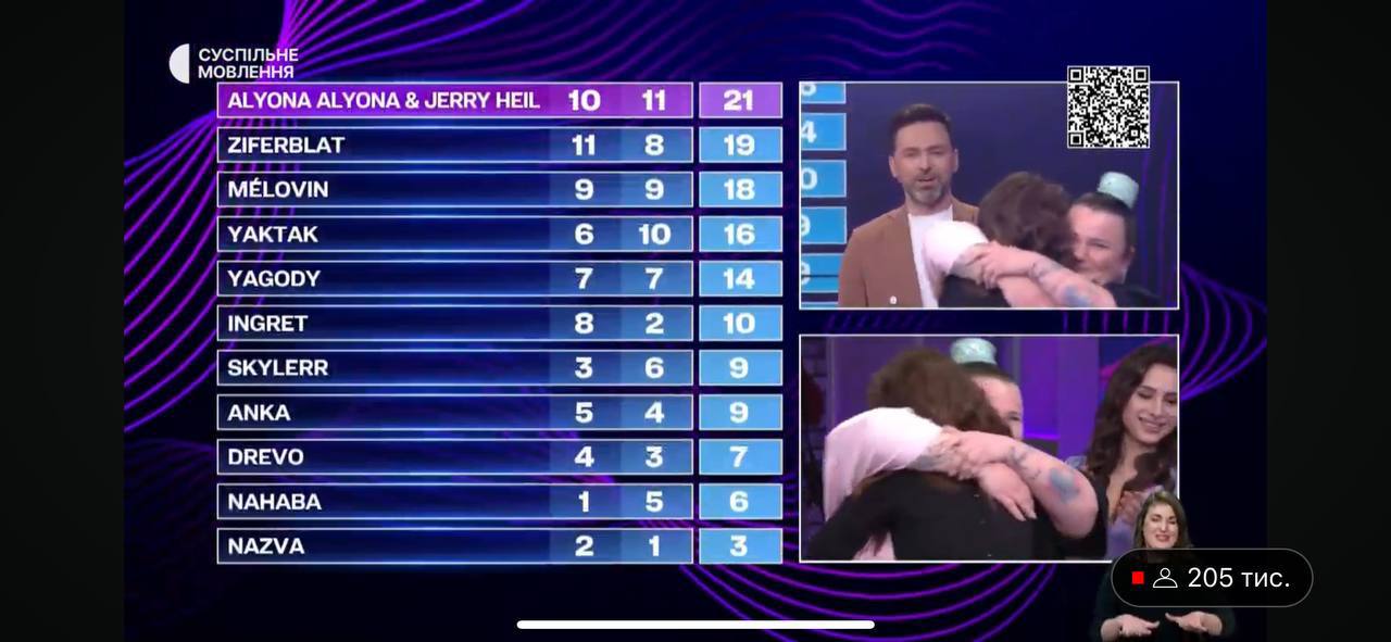 При этом жюри победителем определило группу Ziferblat с песней "Place I call home". Однако зрители отдали предпочтение дуэту Jerry Heil и Alyona Alyona.