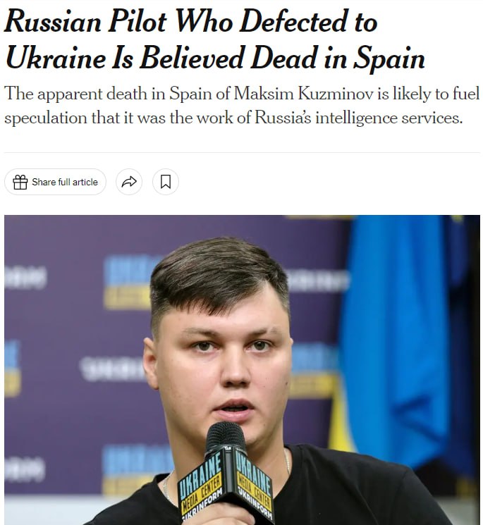 Вчера в ГУР заявили, что в Испании найден мертвым российский пилот Кузьминов.