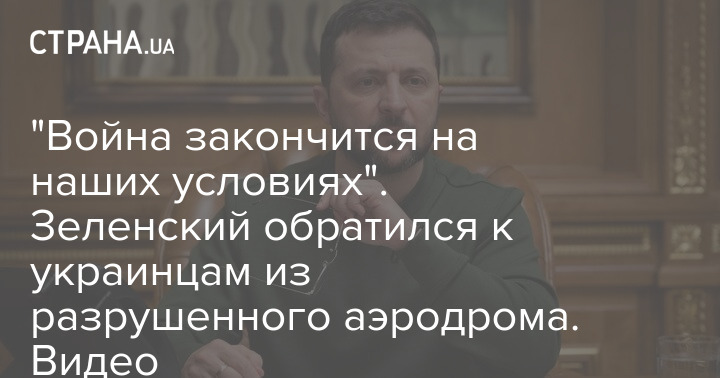 "Война закончится на наших условиях". Зеленский обратился к украинцам из разрушенного аэродрома. Видео