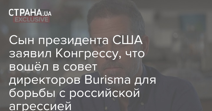 Сын президента США заявил Конгрессу, что вошёл в совет директоров Burisma для борьбы с российской агрессией