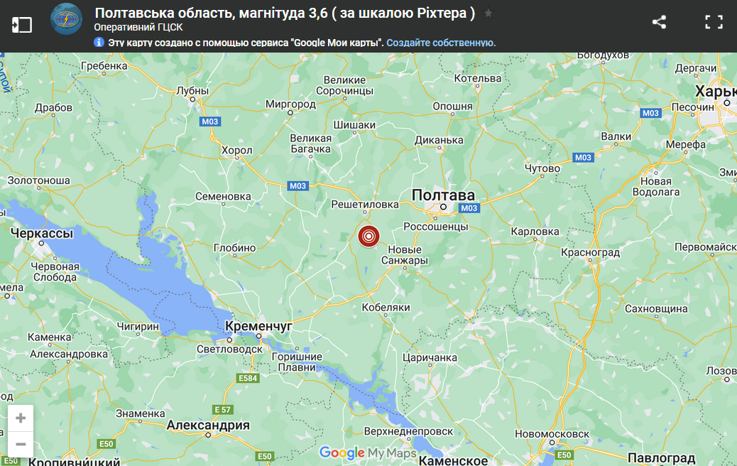 Ночью 1 марта в Полтавской области зарегистрировали землетрясение магнитудой 3,6.