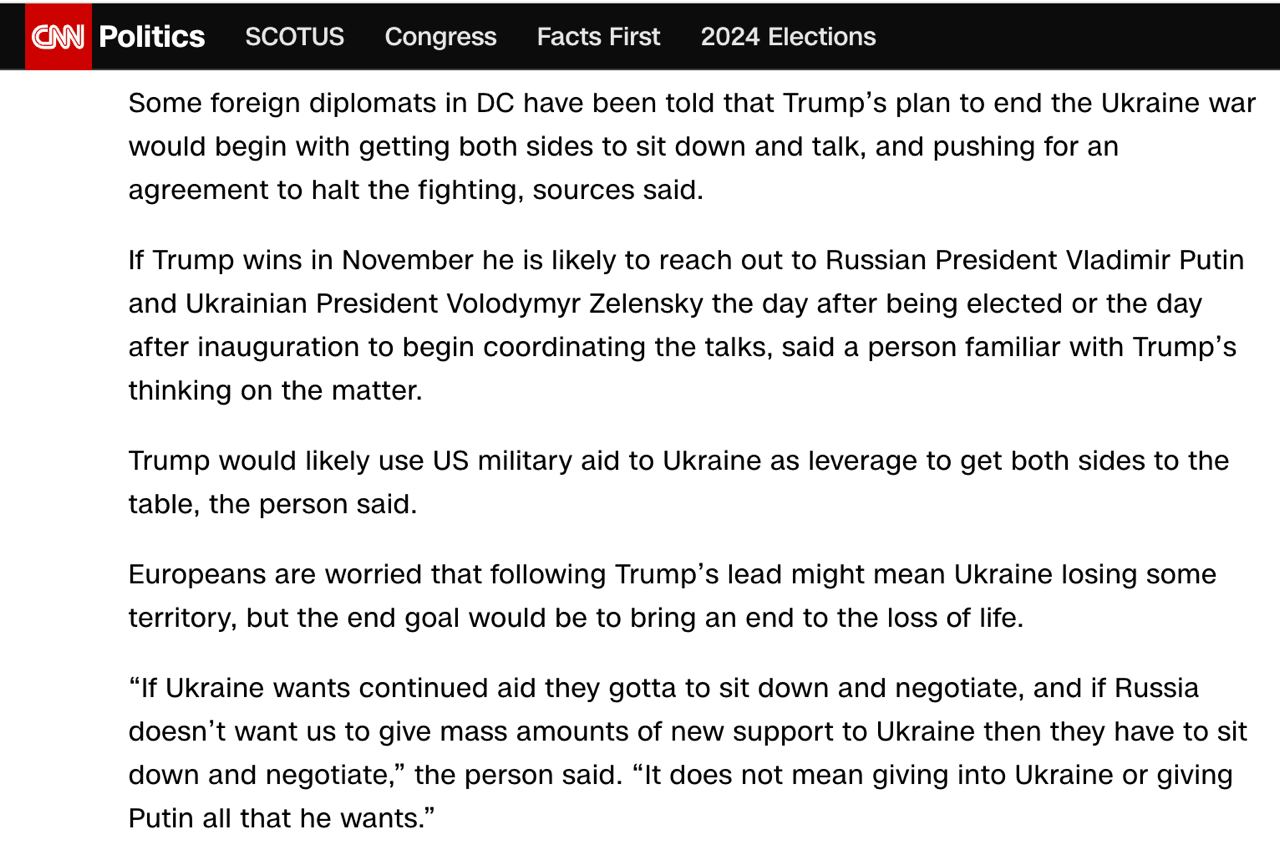 План Трампа начнется с того, чтобы заставить Украину и Россию сесть за стол переговоров - CNN