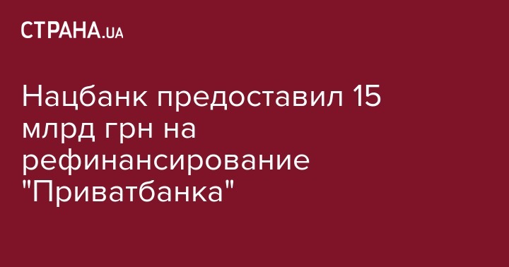 "Национальный банк Украины с целью поддержки ликвидности, обеспечения бесперебойного обслуживания клиентов, работы отделений и банкоматов, своевременного обеспечения расчетов предоставил ”Приватбанку” кредит рефинансирования на 15 млрд грн", - говорится в сообщении.