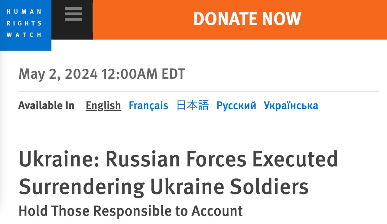 Human Rights Watch заявила, что 22 апреля направила письмо министерству обороны РФ с просьбой предоставить информацию об упомянутых случаях, а также о том, получают ли российские военные приказы убивать сдающихся украинских солдат. Но ответа на письмо не последовало.