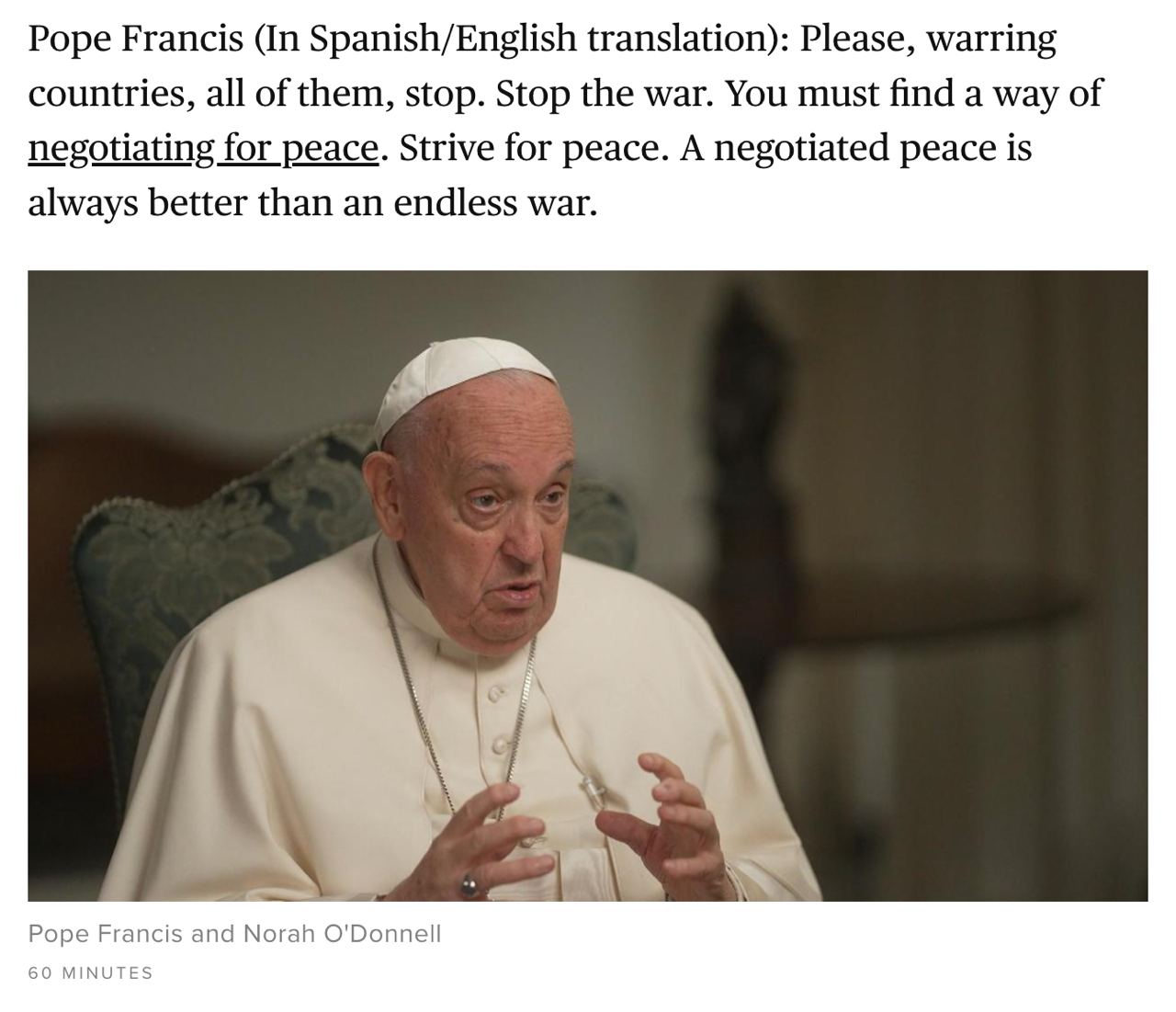 "Пожалуйста, вовлеченные в конфликт страны, остановитесь! Остановите военные действия. Вы должны найти способ для переговоров о мире. Достигнутый путем переговоров мир всегда лучше, чем бесконечные войны", - заявил папа.