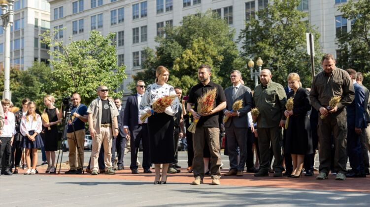 В поездке с Владимиром Зеленским находится его жена Елена Зеленская, а также глава Офиса президента Андрей Ермак, министр обороны Рустем Умеров и глава МИД Дмитрий Кулеба.