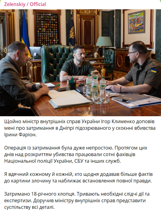 "Операция по задержанию была очень непростой. В эти дни над раскрытием убийства работали сотни специалистов Национальной полиции Украины, СБУ и других служб", - пишет президент.