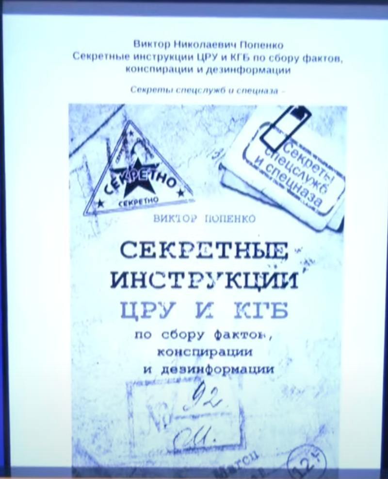 Показали только, что Зинченко читал книгу "Секретные инструкции ЦРУ и КГБ".