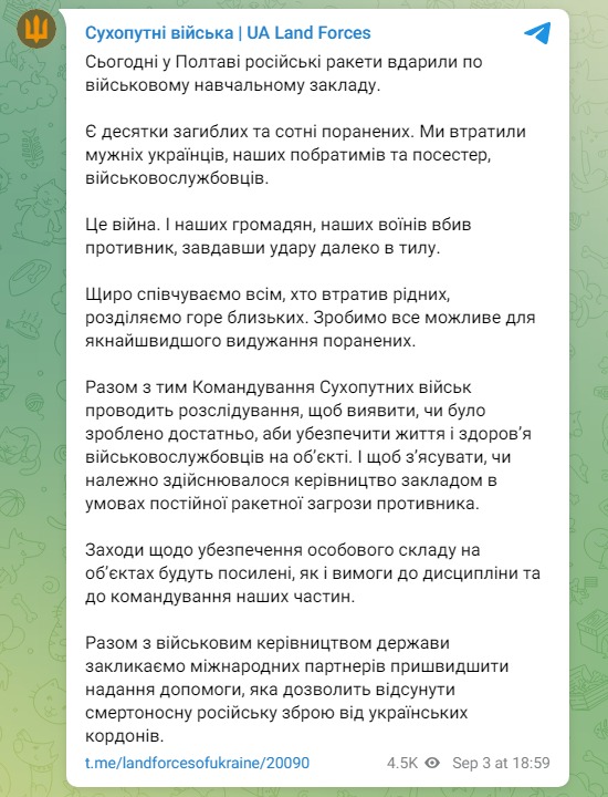 В Полтаве во время ракетного удара по военному учебному заведению не было никаких построений.