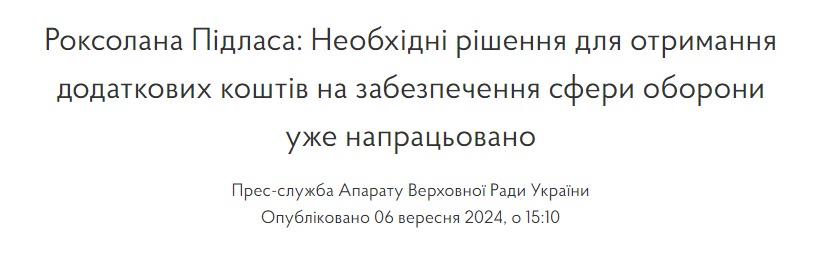 Об этом рассказала народный депутат, глава парламентского комитета по вопросам бюджета Роксолана Пидласа, ее слова приводит сайт Верховной Рады.