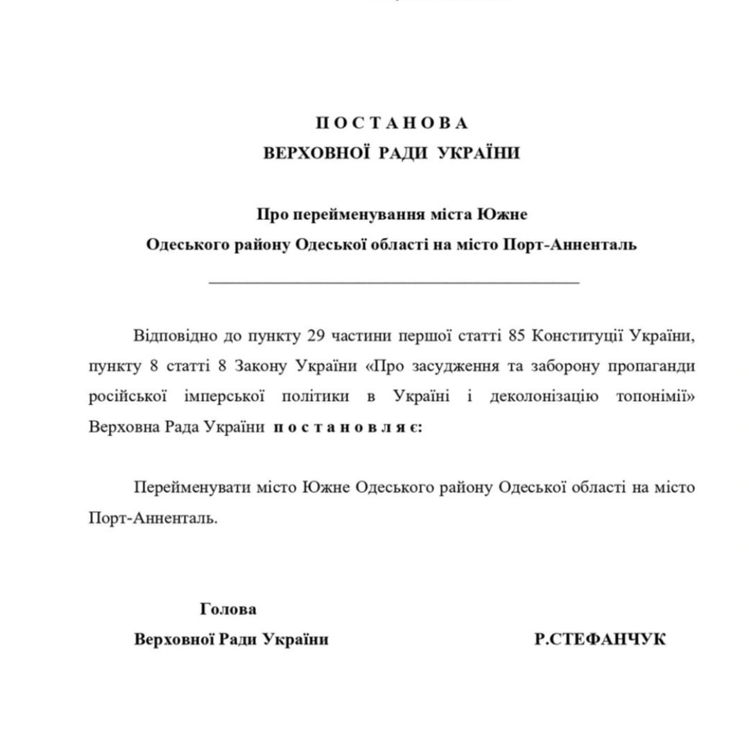 Проект постановления о переименовании появился на сайте Верховной Рады.
