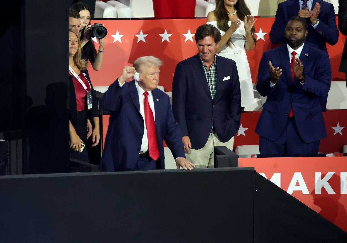 Карлсон выступал на съезде республиканцев, который номинировал Трампа кандидатом в президенты. Впервые появившись на публике с забинтованным ухом, бывший американский лидер сидел на конвенции в одном ряду с журналистом.